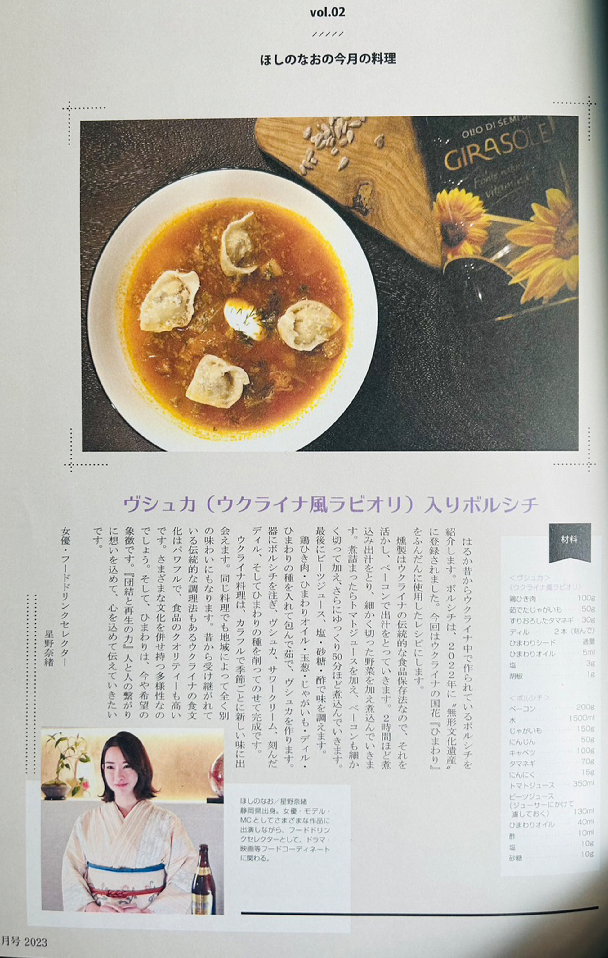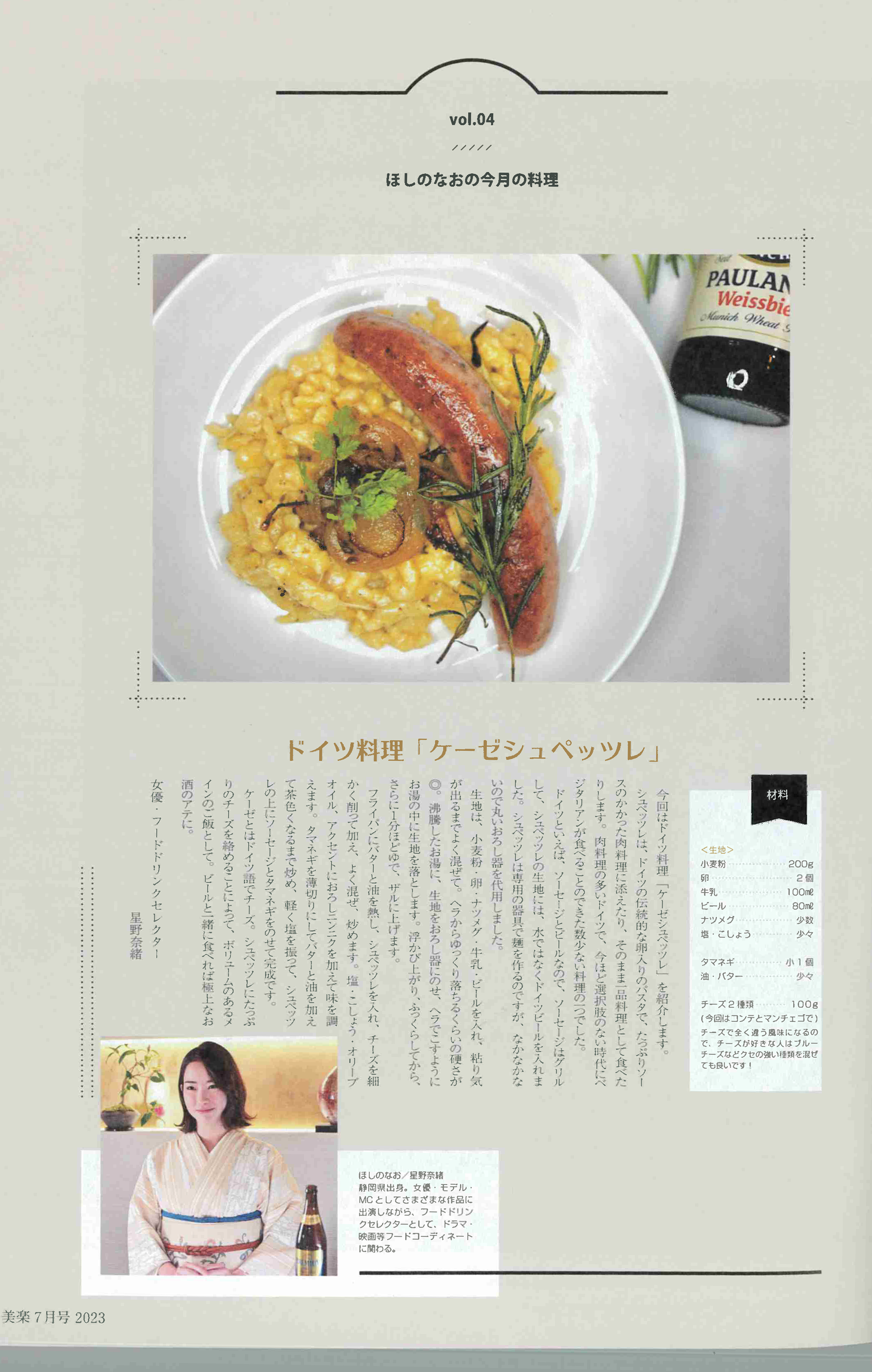 ほしのなおの今月の料理